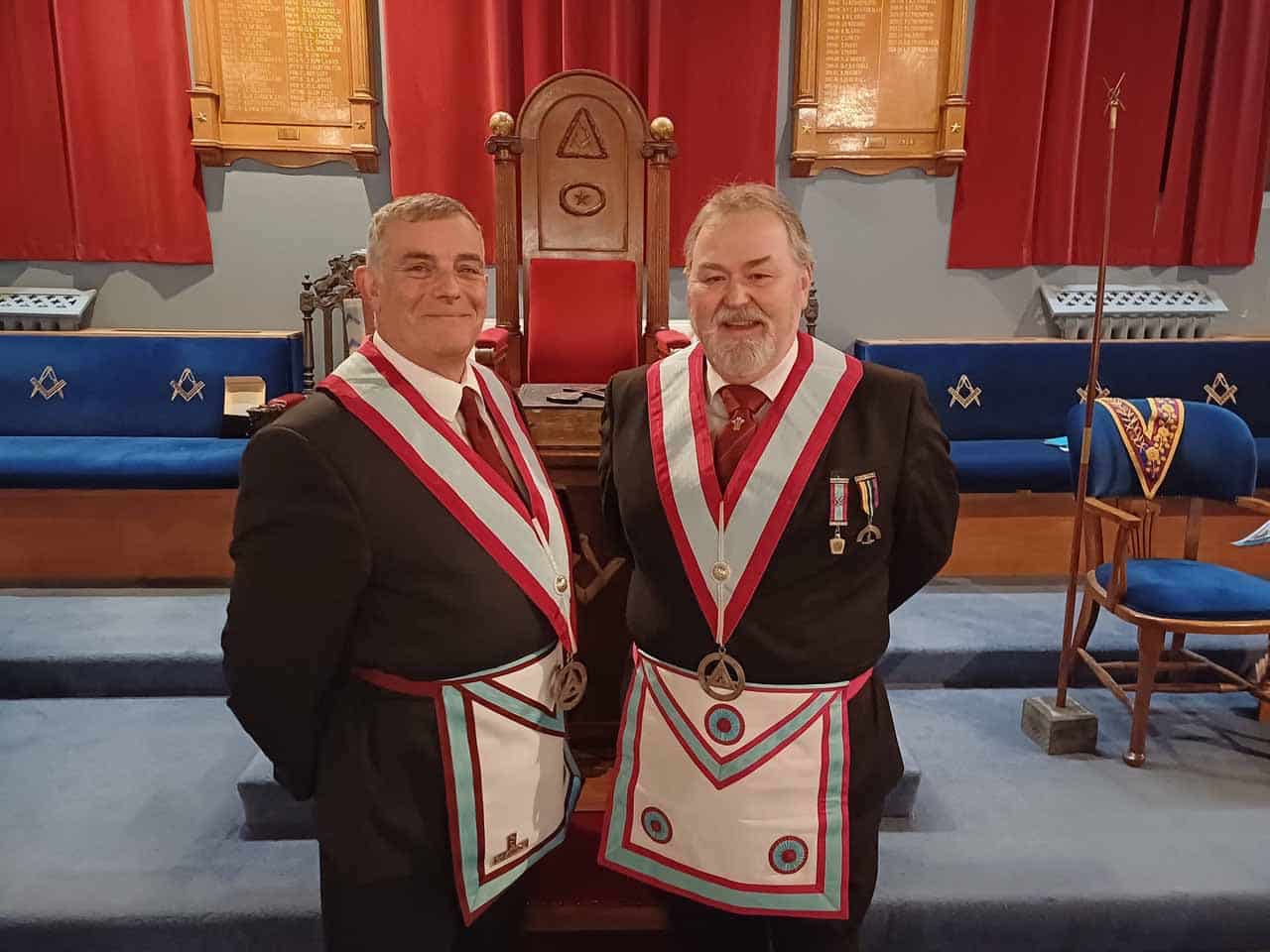 There they were treated to a very impressive ceremony. W.Bro. Mark Irons, the outgoing WM, led his team in installing Bro. John Garner into the chair.
