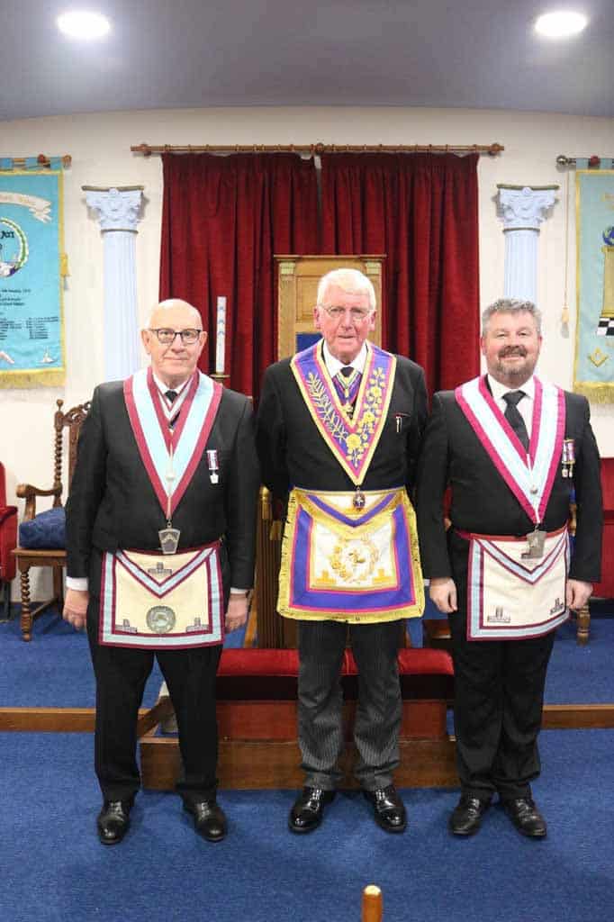 The Installation ceremony at the Flint Lodge of Mark Master Masons saw the Worshipful Master, W.Bro. James Montgomery, install the Master Elect Bro. Brian Evans in an impeccable manner. All the Officers played their part very well and with the Addresses delivered perfectly. Mong other dignitaries present was W.Bro. Philip Edwards, Past Deputy Provincial Grand Master.